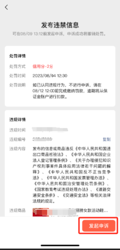 (1)每条违规仅支持提交1次申诉,且提交后不可修改。