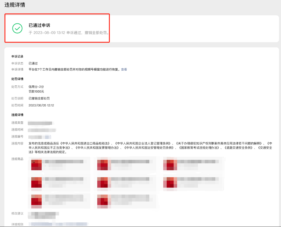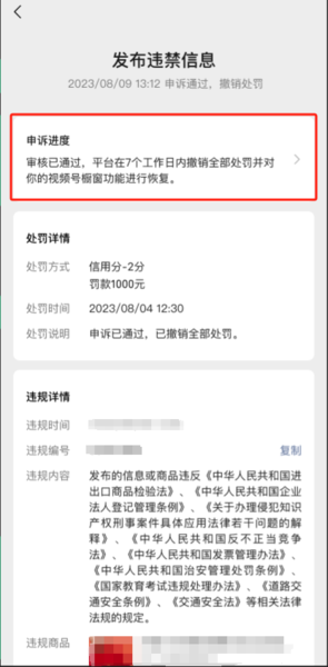 详细申诉指引:《视频号橱窗违规申诉管理规则》