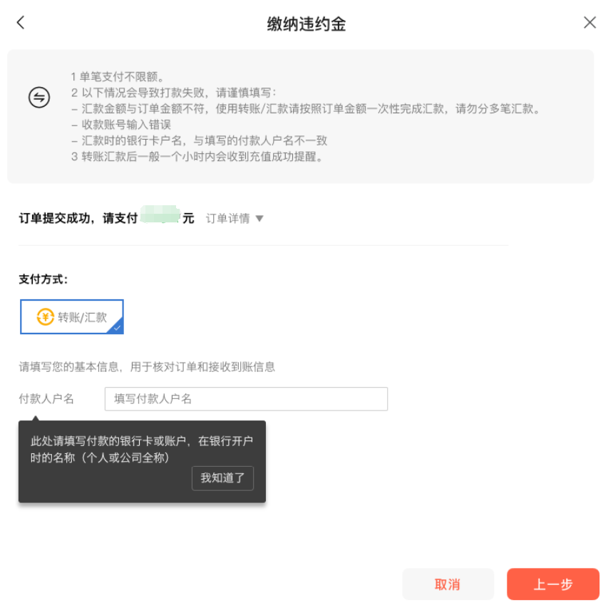 当信用分扣分(包括申诉不通过或逾期未申诉)累计到扣罚节点时,平台将下发相应违约金缴费单。