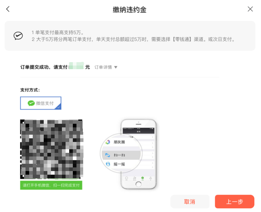 点击【缴纳罚款】,选择支付方式,缴纳方式分为【微信支付】和【转账/汇款】