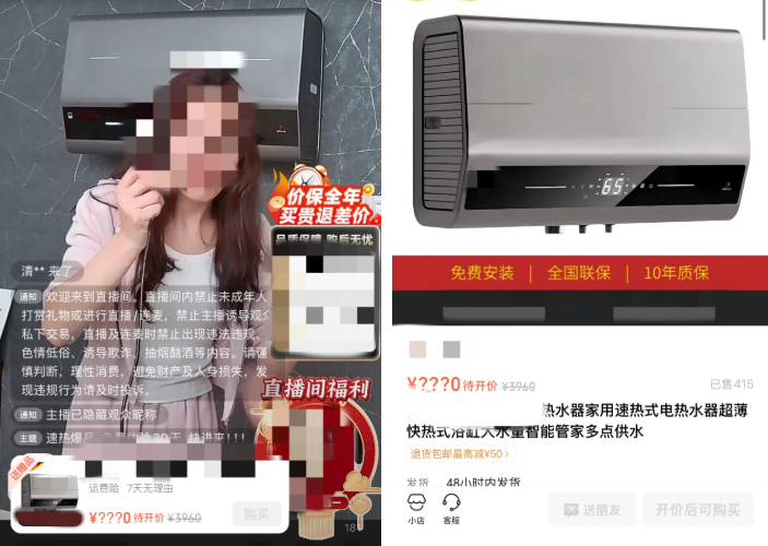 直播间宣传商品保价至双十一,与对应商品链接价格信息描述一致。 | 直播间画面展示商品价保全年,实际商品详情信息无任何价保服务描述。 |
