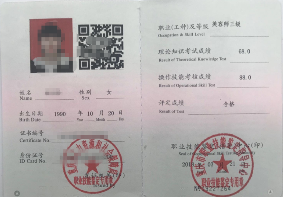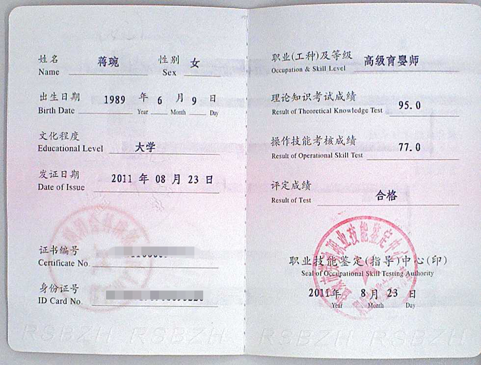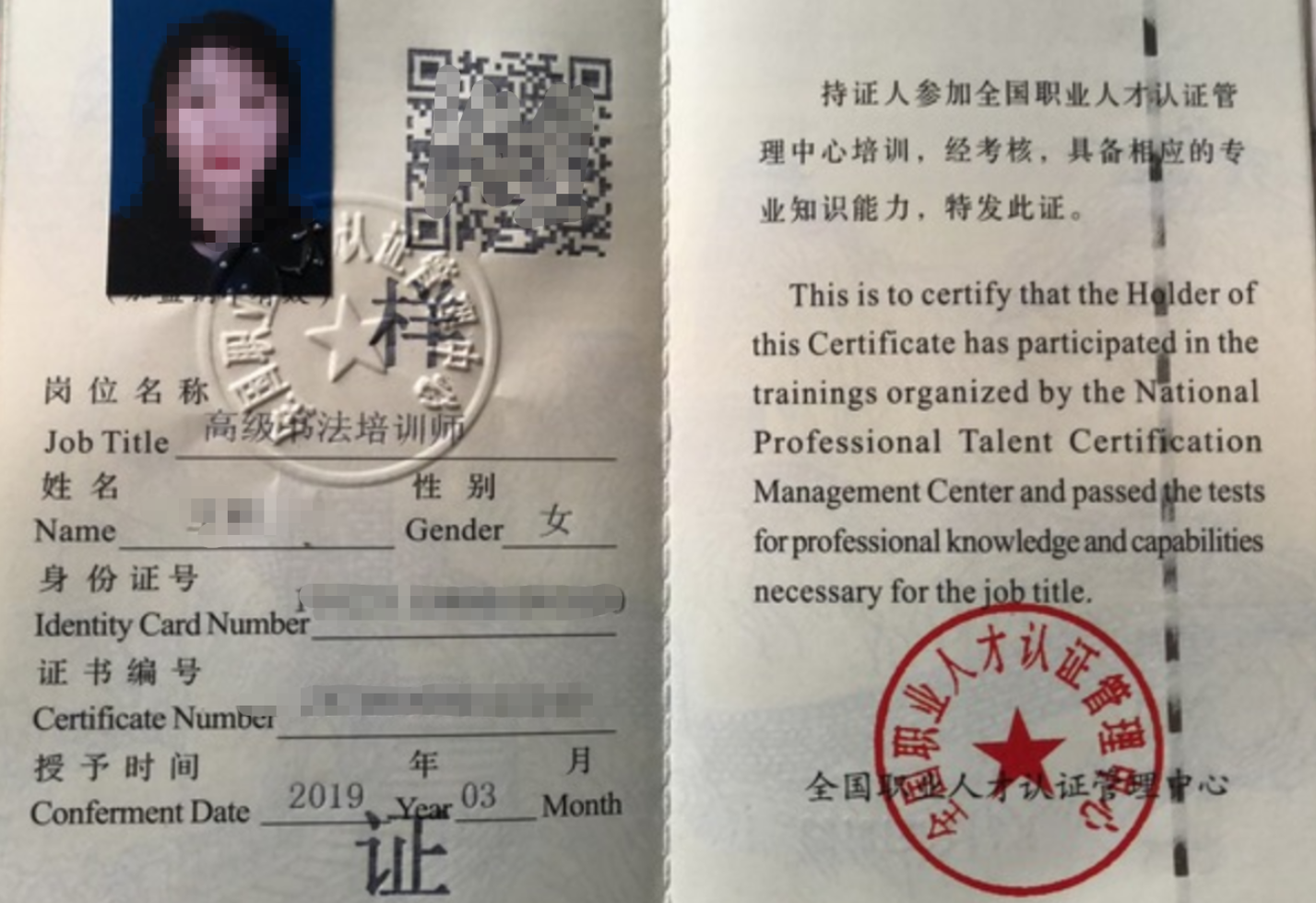 不同的培训中心印发的证书可能不同,仅做参考 | |||||