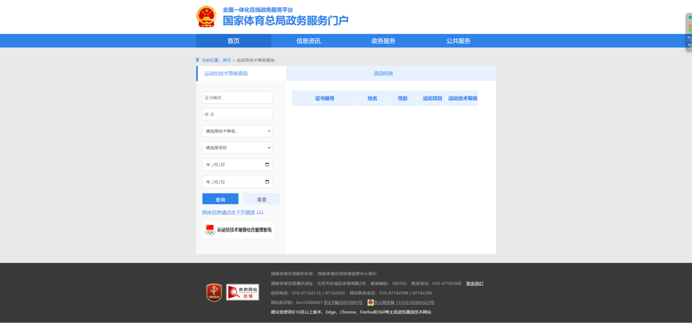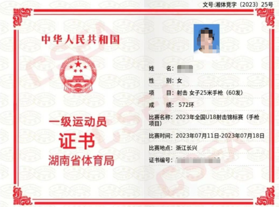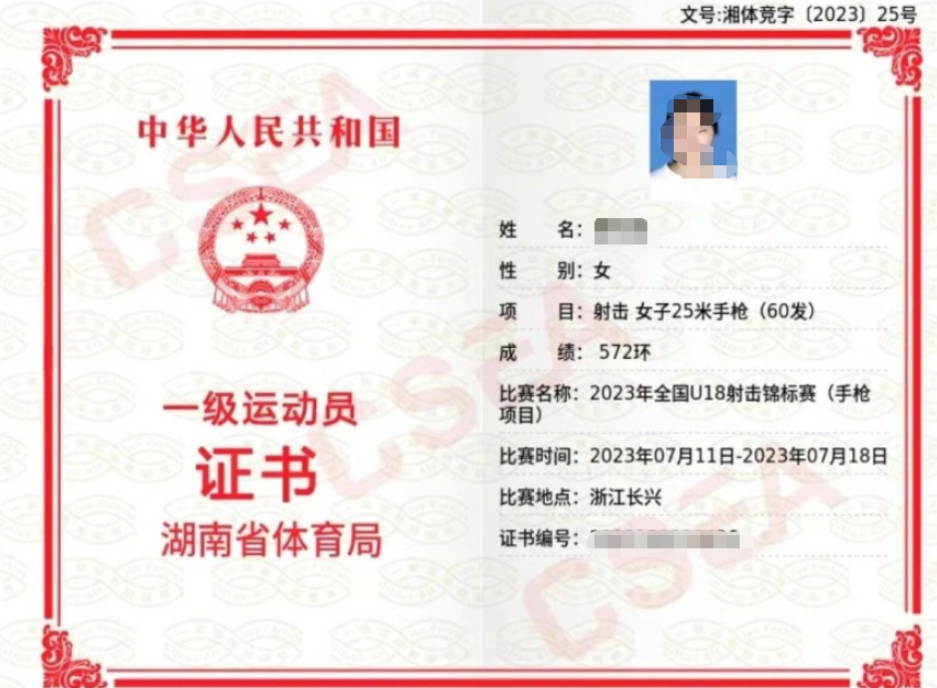 国家一级/二级运动员证书或运动员信息查询系统截图 | (需注册后查询,部分省份可能有单独系统) | ||||