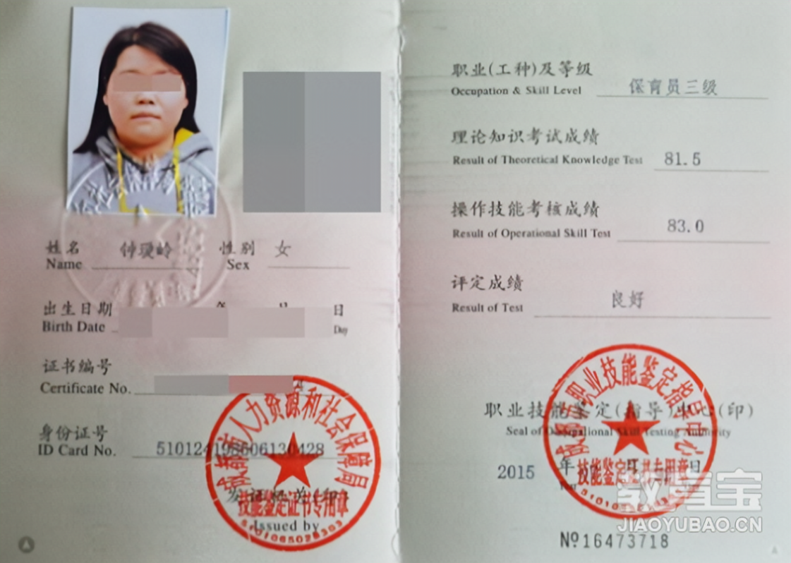 此为案例,职业工种需为孤残儿童护理员 | |||||