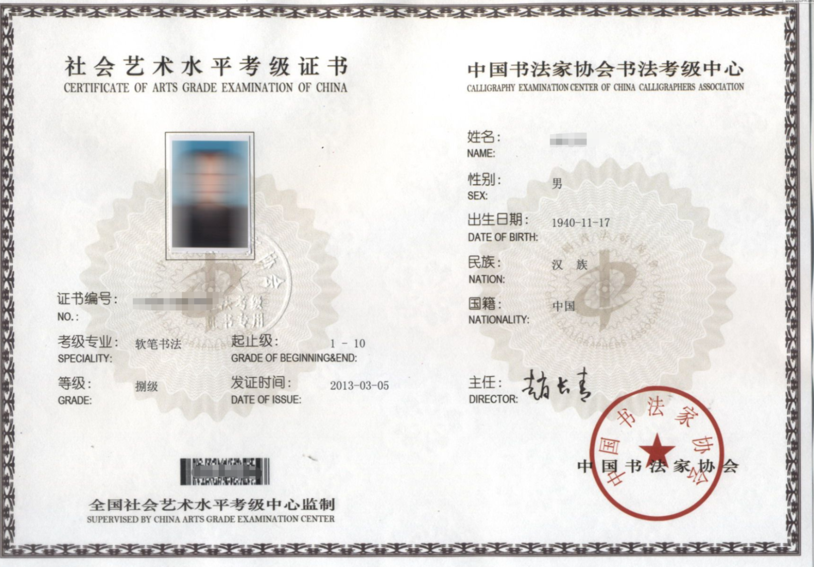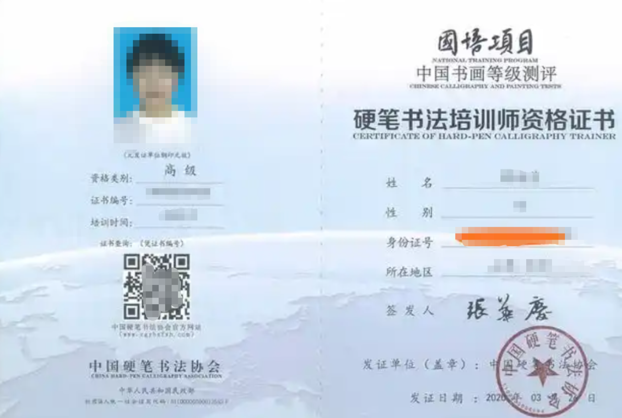 中国硬笔书法协会颁发的资格证书/中国书画等级考试培训师 | |||||