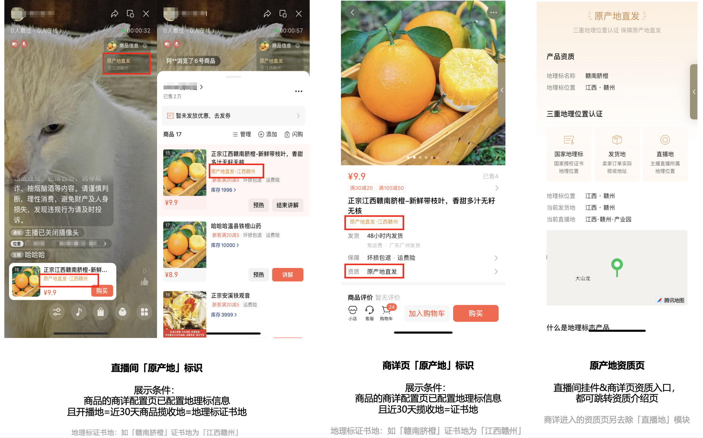 如希望在直播间场景展示原产地标签,需满足以下条件:
