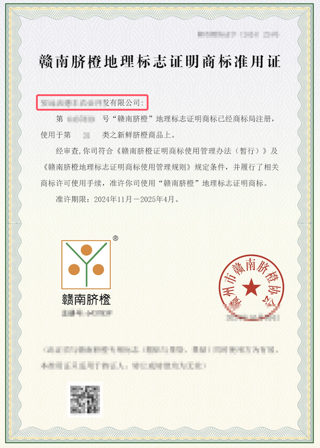 注:地理标证书需要是「授权书」,是对应协会授权给你所拥有小店的证书,证书中需包含小店信息,如下方证书: