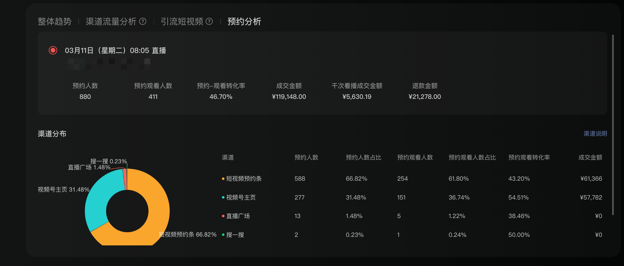 同时支持分析观众预约直播的渠道,渠道入口示意参考:《直播预约渠道说明》