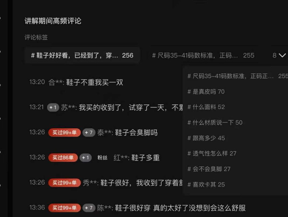 直播期间跟商品相关的高频评论会被总结出来聚合展示