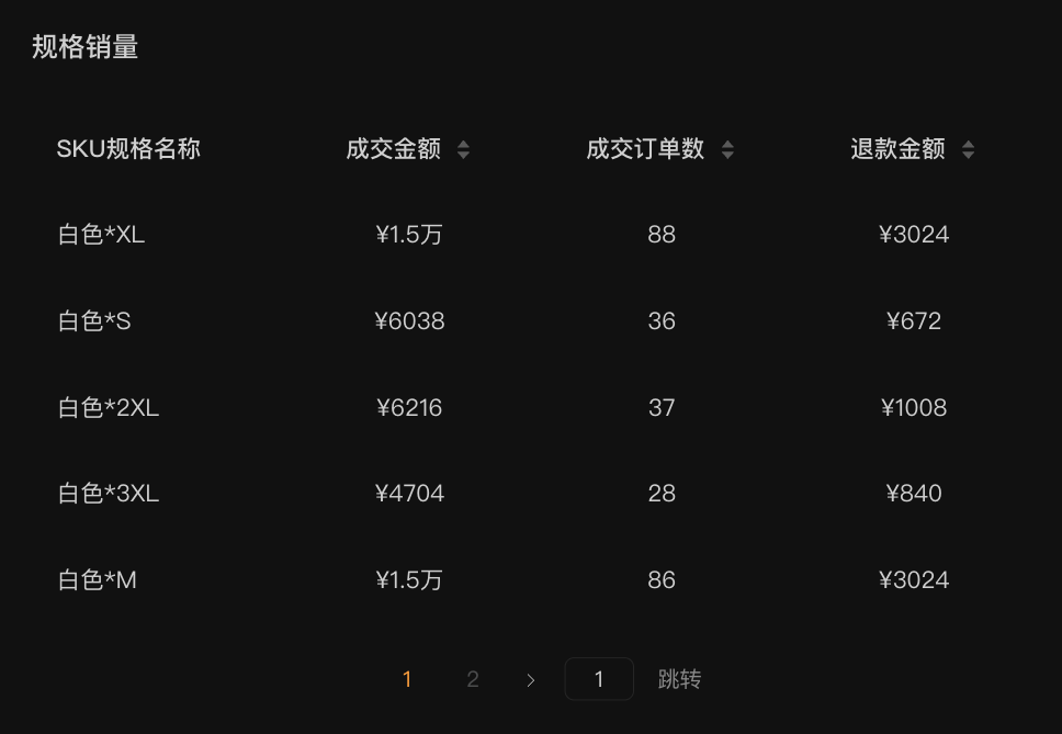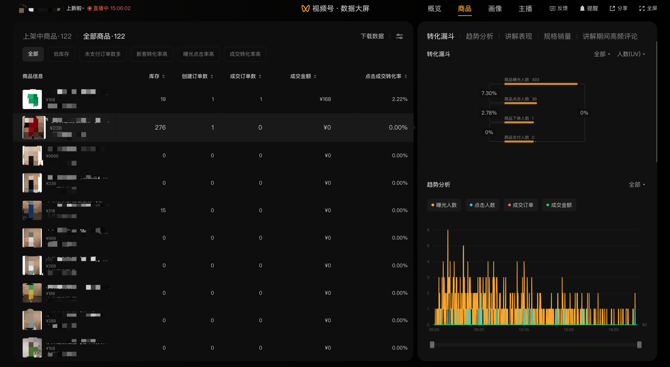 商品屏幕支持查看每个商品的流量及交易数据,支持对商品进行深入分析。