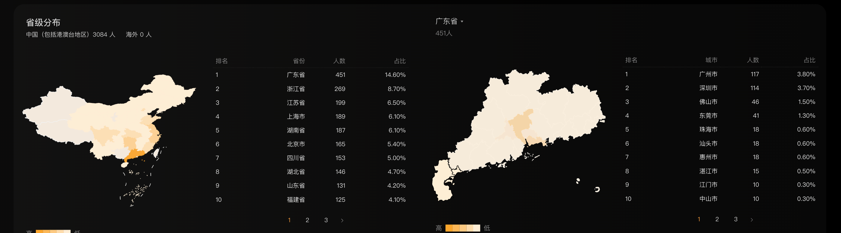 大屏支持查看直播间的在线观众画像、整场观众画像、看播粉丝画像、看播买家画像。
