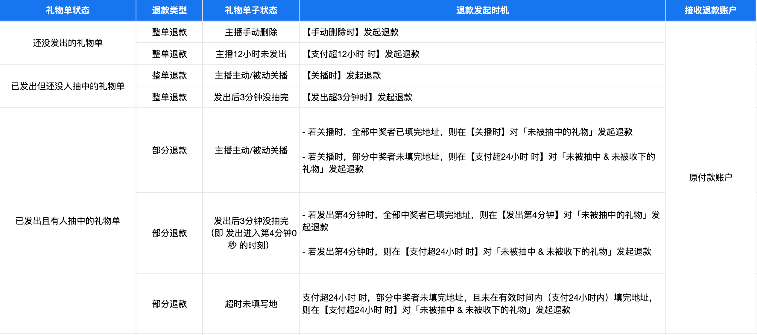 ● 若礼物开抽(即倒计时结束时刻)超过3分钟仍未抽完,则活动自动下线,挂件消失,观众无法再进行抽奖;未发出去的礼物金额会原路退回支付账户。