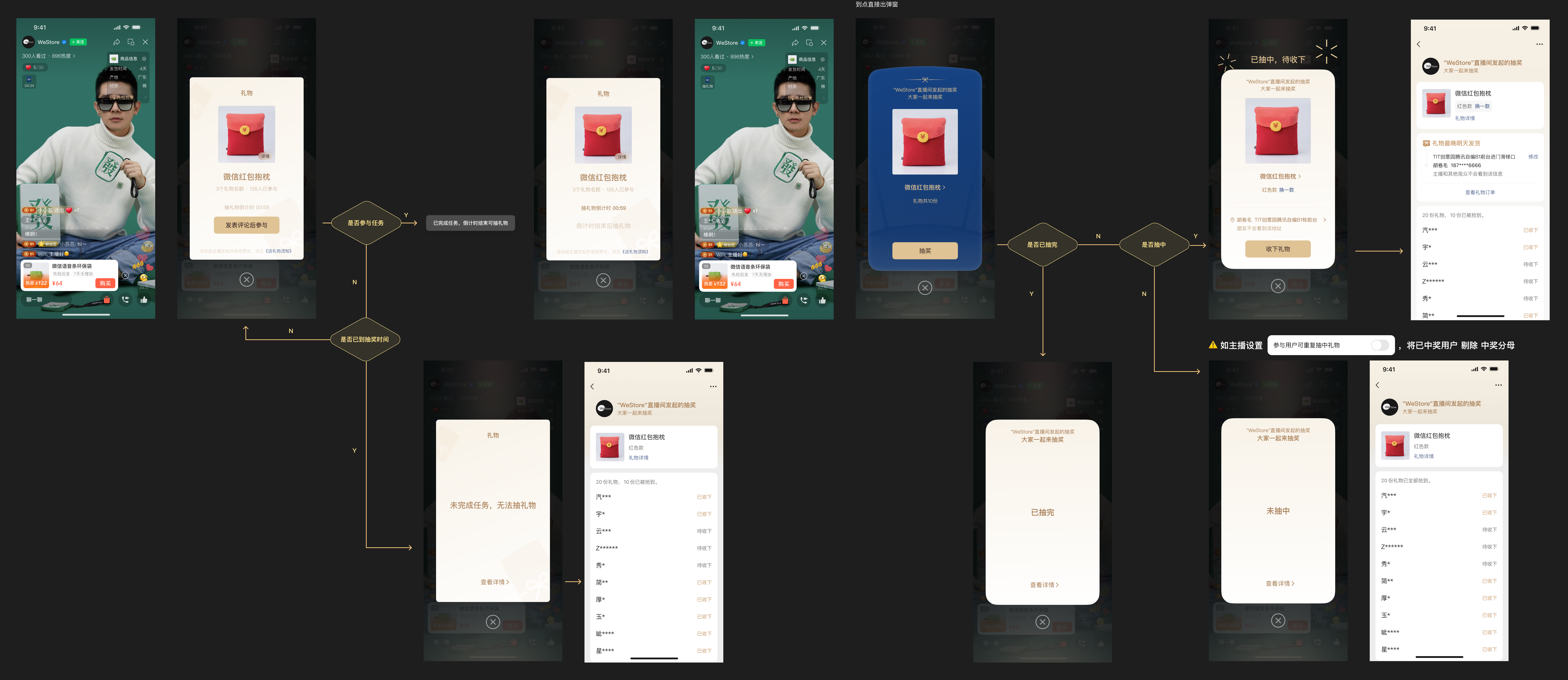 2. 参与用户可重复抽中礼物:礼物、福袋都有此开关,名额不互通;相当于,用户在直播中抽中福袋后,仍有可能在同一场直播的礼物活动中抽中礼物;